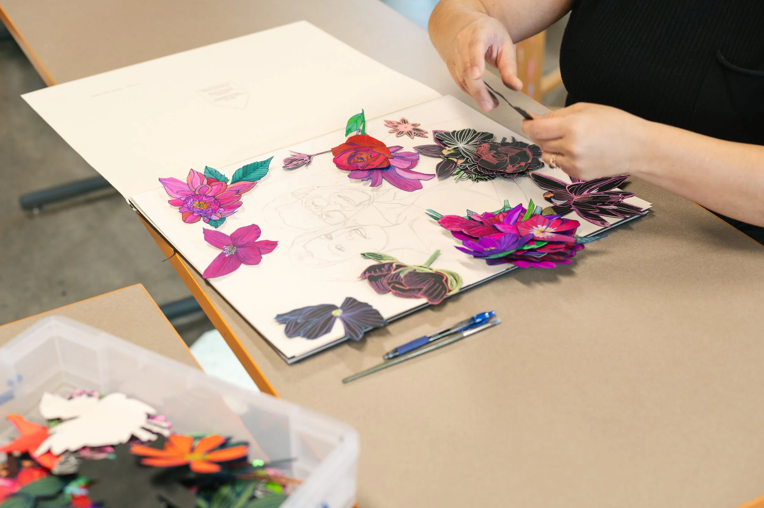 Jessica has shown her work throughout the Madison community for the past 14 years. She has participated in art events such as MMOCA Gallery Nights, The Latino Art Fair, La Alianza’s Immigrant Justice Week and the CultivArte Colectivo Latinx Art Festival. Jessica has contributed to the city’s public art scene. In 2023, the City of Madison selected two of her paintings for the Utility Box Project, viewable next to Burnie’s Rock Shop. More recently, she designed a community painted flamingo mural for the City of Madison’s “Flock to State” experimental pedestrian mall in April of 2024.