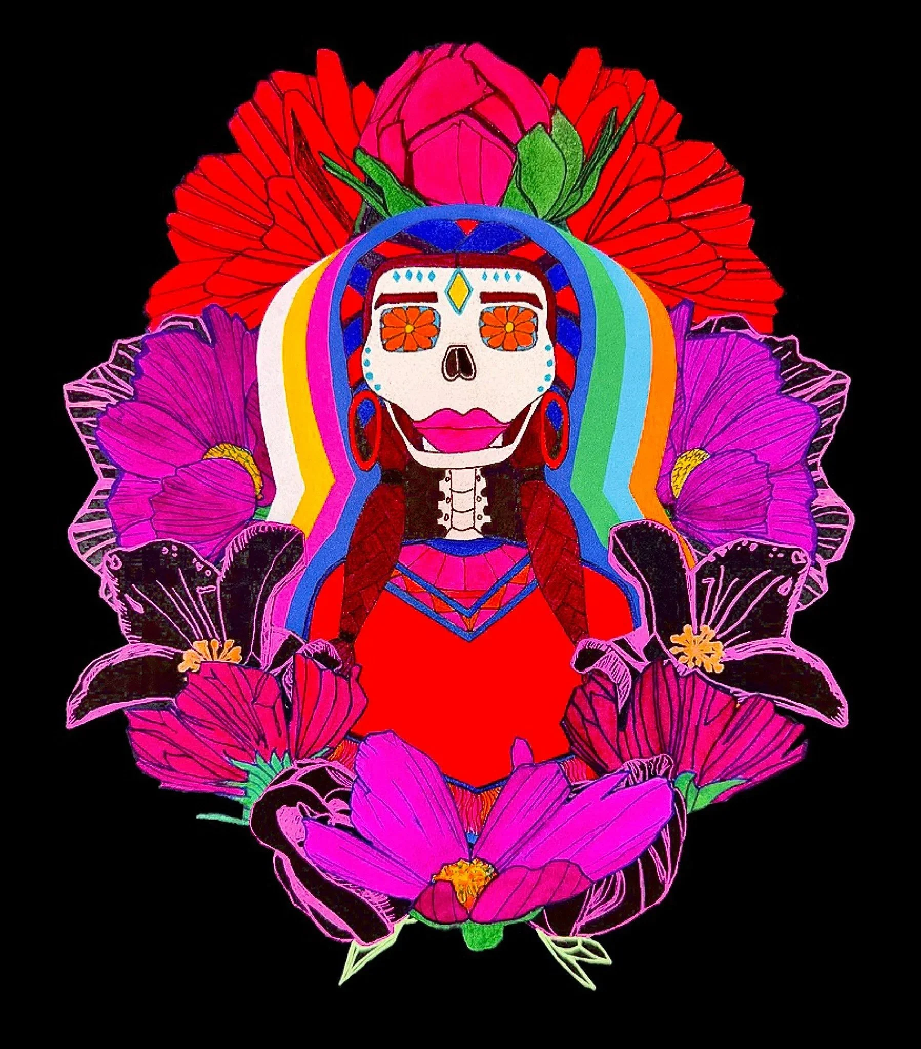 “When I was invited to reimagine the calavera for Colectivo, I was struck by the synchronicity—I had just purchased the Co-Optiva bag the day before. Though I didn’t grow up with Día de los Muertos, its spirit—vibrant colors, magical energy, joyful celebration, and honoring of ancestors—resonates deeply.